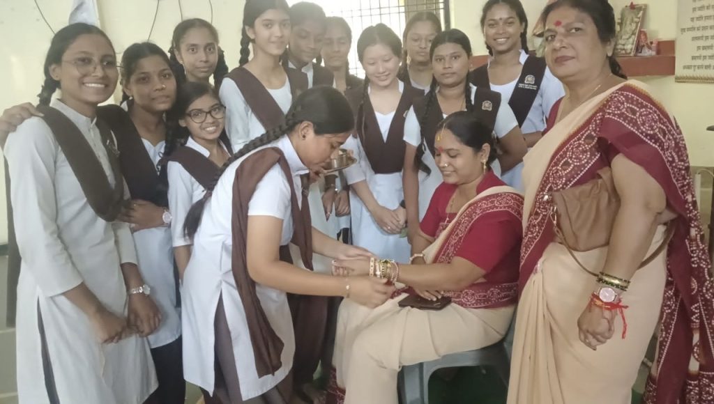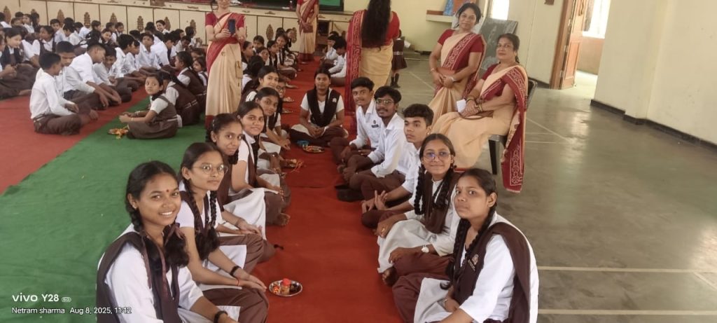 सरस्वती शिशु मंदिर उच्चतर माध्यमिक विद्यालय सरस्वती विहार रायपुर में आज दिनांक 8 अगस्त 2025 दिन शुक्रवार को रक्षाबंधन पर्व का भव्य आयोजन किया गया। कार्यक्रम का शुभारंभ सरस्वती वन्दना के साथ हुआ उसके बाद कक्षा तृतीय से द्वादश तक के बहनो द्वारा राखी बनाओ प्रतियोगिता एवं नारियल सजाओ प्रतियोगिता का आयोजन किया गया उसके बाद समस्त बहनो ने भैय्याओ को एवं समस्त दीदीयो ने आचार्यों को तिलक लगाकर आरती उतार कर राखी बांधी जिसमें समस्त भैय्याओ ने अपने बहनो की रक्षा करने के लिए आशिर्वाद भी दिया।कक्षा सप्तम एवं अष्टम की बहनो के द्वारा हाथो से बनाई राखी हमारे रक्षक सैनिक भाइयो के लिए तीसरी वाहिनी छत्तीसगढ़ सशस्त्र बल बटालियन रक्षाबंधन के अवसर पर राखी दिए है जिससे हमारे सैनिक भैय्या रक्षाबंधन के दिन अपने कलाई में पहन ले। कार्यक्रम के अंत में शांति पाठ के साथ समापन किया गया।