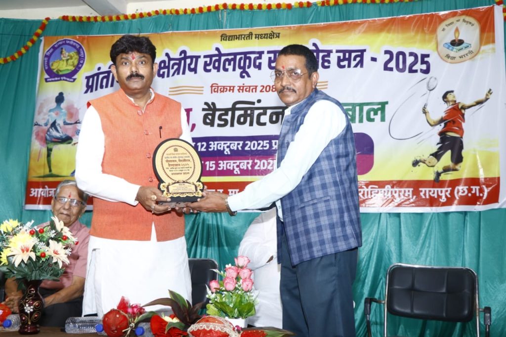 सरस्वती शिशु मंदिर उच्चतर माध्यमिक विद्यालय सरस्वती विहार रायपुर में दिनांक 11 अक्टूबर से 15 अक्टूबर तक प्रांतीय एवं क्षेत्रीय योगासन, बैडमिंटन, हैंडबाल खेलकूद आयोजित है जिसमें आज 12 अक्टूबर को प्रांतीय खेलकूद सम्पन्न हुआ जिसमें मुख्य अतिथि मान.श्रीआंशु चन्द्रवंशी (पार्षद -पं दीनदयाल उपाध्याय नगर रायपुर) विशिष्ट अतिथि मान.श्री बद्रीनाथ केसरवानी (पूर्व व्यवस्थापक – सरस्वती शिशु मंदिर देवेन्द्र नगर रायपुर) अध्यक्षता मान.श्री निलेश अग्रवाल (सहसचिव – मां सरस्वती बाल कल्याण समिति),मान.श्री प्रकाश सिंह ठाकुर (सचिव – मां सरस्वती बाल कल्याण समिति) श्री मानिक लाल साहू(राजिम एवं रायपुर विभाग के विभाग समन्वयक) श्री दिवाकर स्वर्णकार (प्रांतीय खेलकूद प्रमुख) श्री राम कुमार वर्मा (प्रांतीय शिशु वाटिका प्रमुख) श्रीमती उत्तरा वर्मा (प्राचार्या- सरस्वती शिशु मंदिर कन्या विभाग सरस्वती विहार रायपुर) श्री गिरीश चंद्र वर्मा (प्राचार्य – सरस्वती शिशु मंदिर बालक विभाग सरस्वती विहार रायपुर) श्री नेतराम शर्मा (वरिष्ठ आचार्य – सरस्वती विहार रायपुर) उपस्थित थे। कार्यक्रम का शुभारंभ मां सरस्वती,भारत माता, एवं ओम के छायाचित्र पर दीप प्रज्ज्वलित कर सरस्वती वंदना के साथ हुआ।