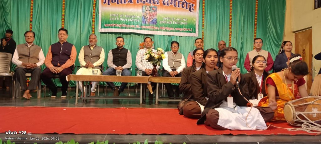 रायपुर: सरस्वती शिशु मंदिर उच्चतर माध्यमिक विद्यालय, सरस्वती विहार, रायपुर में आज 26 जनवरी 2026 को 77वां गणतंत्र दिवस अत्यंत उत्साह और देशभक्ति के वातावरण में मनाया गया। इस गरिमामय समारोह में शिक्षा, समाजसेवा और प्रशासन जगत की कई नामचीन हस्तियां अतिथि के रूप में सम्मिलित हुईं।